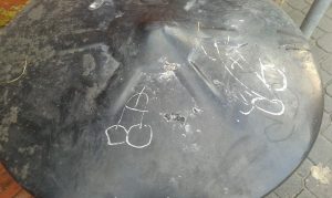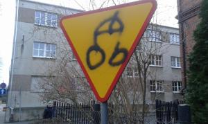 Z kolei stałe ekspozycje obrazów fallicznych być może ktoś by wpisał w poczet popularnych aktów wandalizmu, ale nie ma się co spinać, nie takie rzeczy to miasto widziało. Faktem natomiast jest, że jeden wizerunek znajduje się na metalowym koszu ulicznym z daszkiem, a właśnie na tym daszku od dobrego roku obraz fallusa jest widoczny. Drugi natomiast widnieje na dość popularnym znaku drogowym, należącym do grupy znaków ostrzegawczych, który ostrzega kierowców dość popularną frazą o chrześcijańskim rodowodzie: ustąp pierwszeństwa.