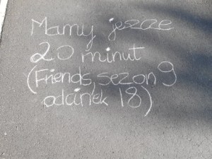A więc stało się. Za jednym pociągnięciem kredy przyłączyłem się do projektu, który można już dzisiaj śmiało nazwać projektem bez granic. Wybrałem cytat z bezkompromisowego serialu ,,Przyjaciele”, dokładnie z sezonu 9, odcinka 18, w którym padają te znane słowa: Mamy jeszcze 20 minut.