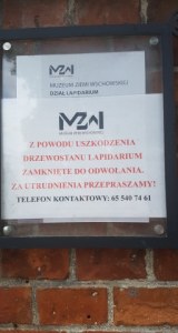 Średnio zorientowany zwiedzający wie również, że jednocześnie, jeżeli wejdzie na stronę internetową gminy, to dowie się, że jedną z siedzib MZW jest Lapidarium i wstęp do Lapidarium jest od wtorku do niedzieli, w święta nieczynny, a między listopadem a marcem trzeba uzgodnić termin wizyty. Ta informacja tam sobie wisi, pomimo tego, że od dawna jest nieaktualna.