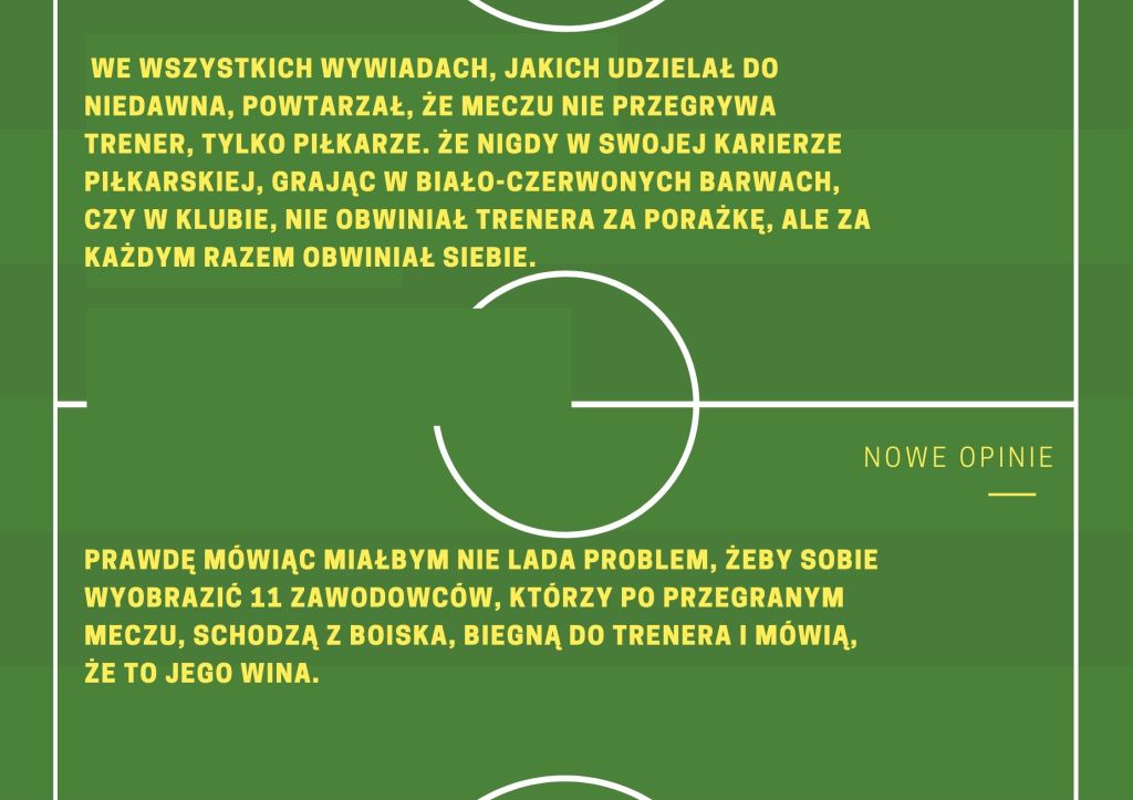 W styczniu tego roku podjął decyzję o zmianie trenera, zatrudniając Portugalczyka Paulo Sousę. Historia polskiej reprezentacji, jej osiągnięcia po 1989 roku, nie tłumaczą w żaden sposób tej decyzji. Tłumaczą ją bardziej zmiany technologiczne, coraz większy wpływ Internetu, memów, niedouczonych kibiców, klików, subów i zasięgów, które mają wpływ na to, co myślą ich odbiorcy.