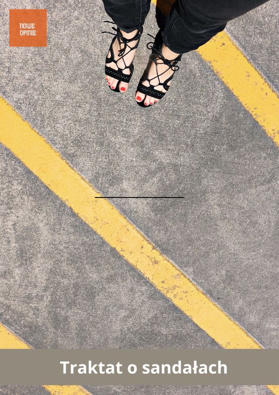 I potem znowu minął jakiś tydzień, może dwa, raczej tydzień. I proszę sobie wyobrazić, że spotykam w plenerze znajomego z pokolenia Y. Idzie, że tak powiem, wyprostowany, uśmiechnięty (bo pokolenie Y, kiedy się ich opisuje, to ludzie uśmiechnięci) i z daleka macha do mnie ręką. Ja też, nie powiem, macham, chociaż wzrok już nie ten i z daleka nie wszystko widzę, że tak powiem, ale macham, co mam nie machać, najwyżej okaże się, że to nie do mnie się macha, można się przyzwyczaić. No ale, zatrzymujemy się, a on, proszę sobie wyobrazić ma sandały na stopach. Więc skracając typowy small talk do minimum pytam: a co ty myślisz o tym, że miałem ja takie doświadczenia w krótkim czasie (i tutaj opowiedziałem ze szczegółami o zaczepkach słownych w kontekście niepełnego obuwia), a teraz widzę cię bracie, żeś jak ja, w sandałach, uśmiechniętyś przy tym i szczęśliwy? Na co on, że co myśli, co myśli, no trudno powiedzieć. Na co ja, że chyba stóp nie akceptują, ciała swojego, wydaje się im jakieś obce, jakoś się te pokolenia (poza wyjątkami) oddzieliły od ciał swoich, nie sądzisz? Tak pytam. Na co on, ten mój brat sandałowy mówi: a słuchaj, coś w tym może być. Coś jest na rzeczy. Może to z wiekiem przychodzi? – Pytam ja brata mego jedynego. Na co on – a żebyś wiedział, że może to być sprawa rocznikowa, generacyjna, że on, im starszy, tym mniej oddzielony od ciała swojego, tym bardziej ze swoim ciałem pogodzony, w komitywie niejakiej obcujący, akceptujący, a nawet wspaniale się z nim (z ciałem) czujący. Na co ja, że mam tak samo, ależ spotkanie bracie nam się wydarzyło, mówię, trza to uczcić. I poszli my przed siebie, gdzie nas stopy odkryte, na słońce wystawione, poniosły, ech.